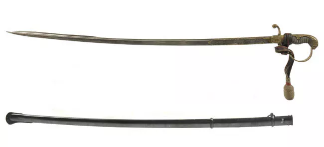 Complemento de arma blanca. Estructura de metal recta ahuecada, que co...