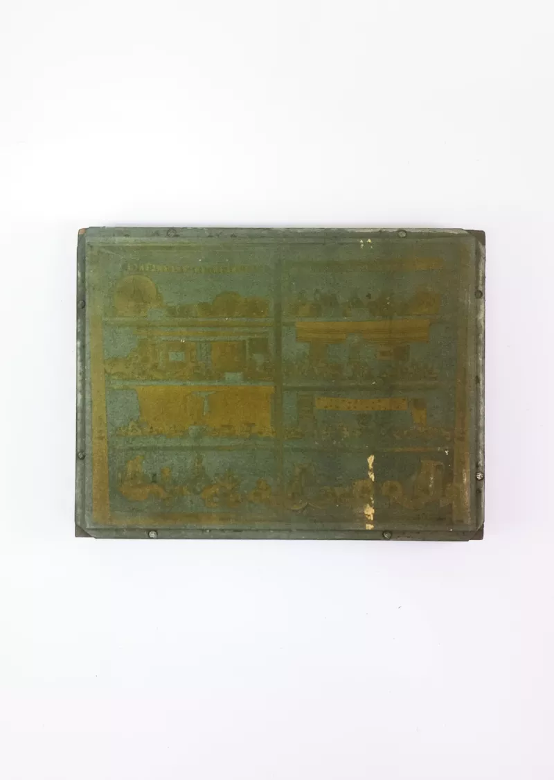 Objeto en forma de prisma rectangular, compuesto por dos placas unidas entre sí. Una de las placas se mueve, mediante un perno en cuyo extremo posee una manivela.