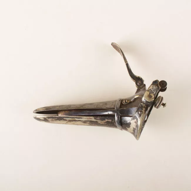 Objeto de uso médico. Herramienta metálica negra que se forma por dos ...
