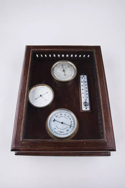 Objeto de forma cóncava compuesto por un hoja metálica y una cacha de madera clara, ambas unidas por dos remaches. Su hoja presenta en la parte interior pequeños dientes en hilera. La cacha tiene en su parte inferior un argolla metálica en la cual se amarra un cordón.