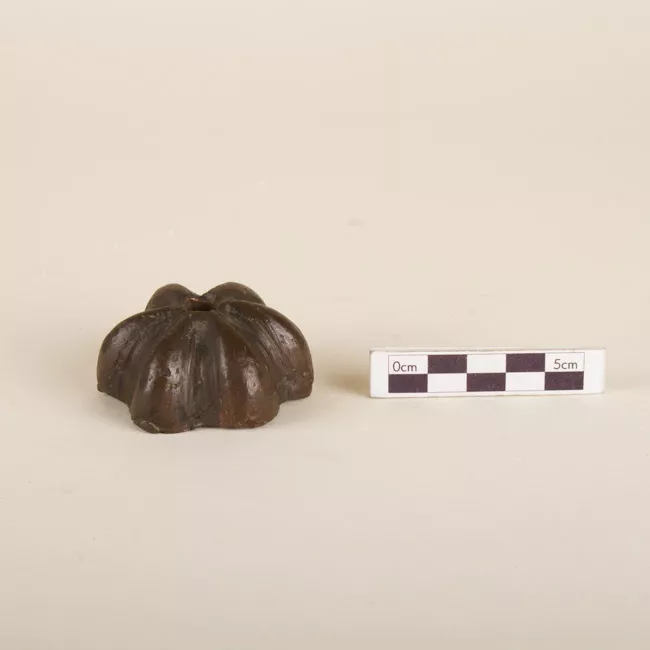 Objeto elaborado en metal. Base estrellada. Superficie convexa con ori...