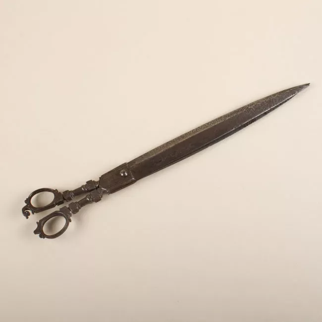 Objeto de uso doméstico. Juego de tocador compuesto por tres piezas: abreguantes, rizador y abrochador. Los tres objetos están realizados en metal niquelado, los mangos tiene forma ovoidal con diseños en relieve de hojas y estriado.