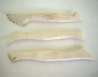 Conjunto de tres herramientas de color marfil, de forma alargada con l...