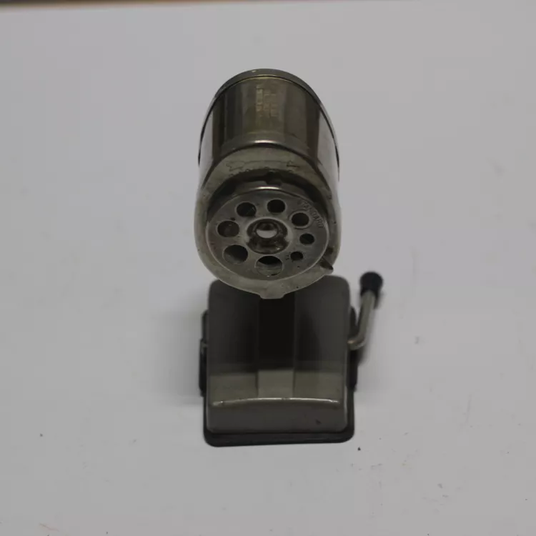 Objeto de metal, se compone por un cuerpo cuadrangular alargado con extremo aguzado. El extremo opuesto tiene una cabeza piramidal con estrías verticales con una base circular.
