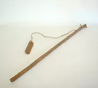 Objeto de uso recreativo, se compone por una forma elíptica de madera, plana y sin decoración, de color marrón claro.