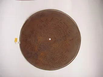 Objeto de forma circular, con un orificio central; en el borde posee...