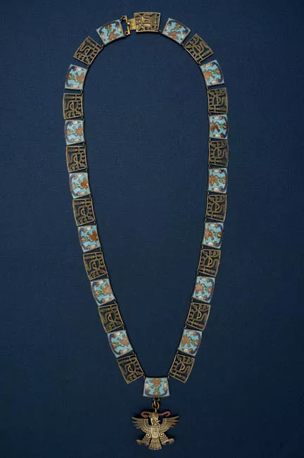 Objeto conmemorativo, metálico compuesto por una venera y una cadena; ...
