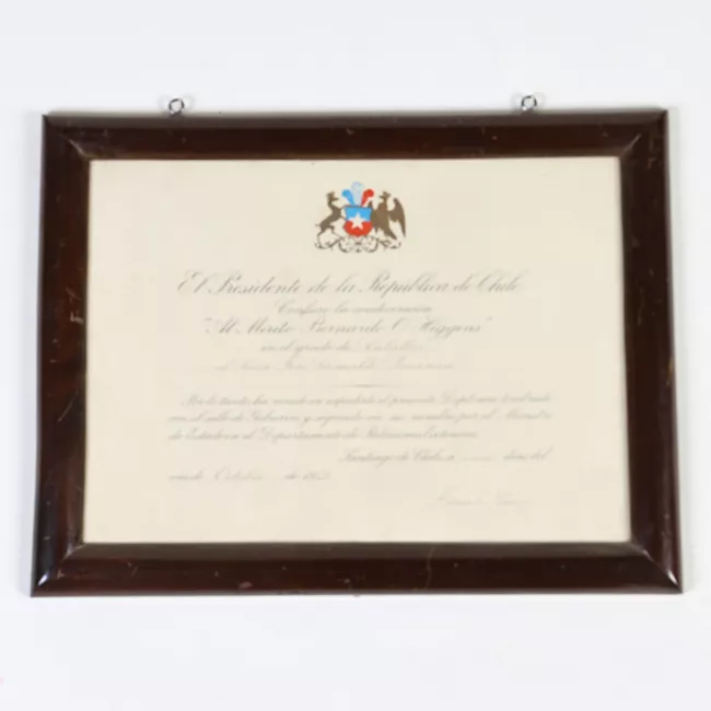 Medalla circular, acuñada en metal; del extremo superior pende una bre...
