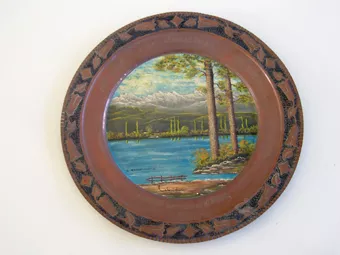 Bandeja de forma circular, en el borde tiene figuras fitomorfas (ent...