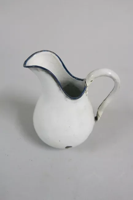 Objeto de uso recreativo, vehículo de lata pintada rojo, blanco y amarillo. Se compone por una estructura rectangular, en la parte frontal una cabina alargada amarilla con base roja de interior vacío, en la parte posterior una estructura lisa y plana de color rojo, sobre la cual se ha dispuesto un cilindro de color blanco y metálico. Se erige sobre cuatro ruedas de lata, movibles, con cubiertas de goma negra.