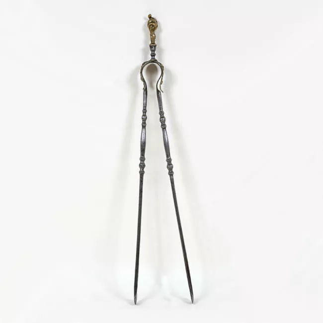 Contenedor negro, se compone por un plato amplio con bordes rectos y una tapa con un tomador esférico con pequeños orificios en la parte superior. Tiene decoraciones florales.