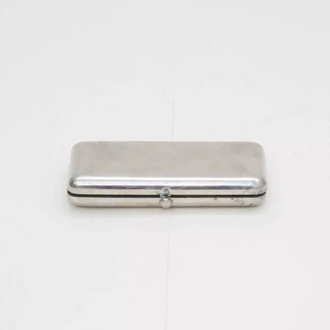 Objeto usado para grabar una imagen. Compuesto por dos lámina de metal montada en un prisma de madera de forma rectangular. Presenta un contendor.