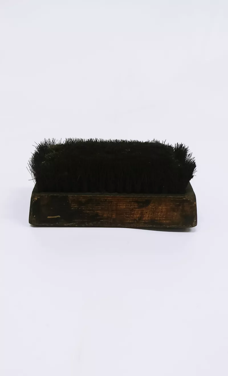 Objeto usado para grabar una imagen. Compuesto por una lámina de metal montada en un prisma de madera de forma rectangular. Presenta un manuscrito. En uno de sus lados manuscrito indescifrable.