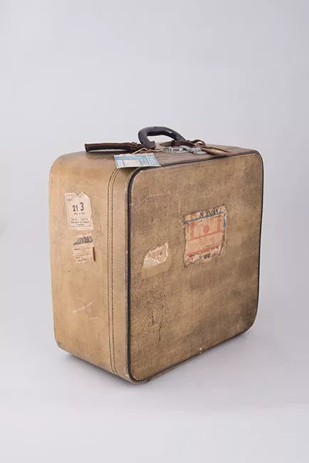 Objeto usado para grabar una imagen. Compuesto por una lámina de metal montada en un prisma de madera de forma rectangular. Presenta un escudo.