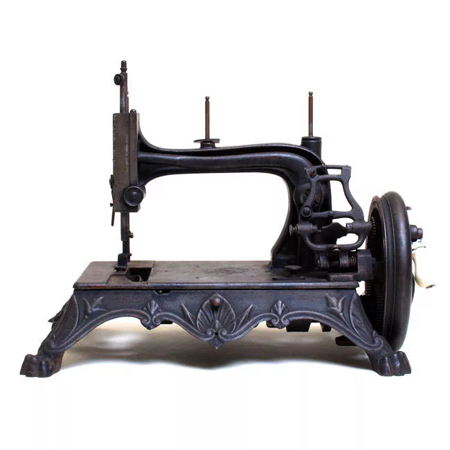 Dispositivo mecánico de hierro pintado negro, utilizado para coser tex...