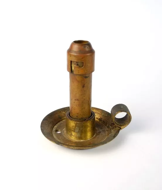 Objeto utilizado para aislar los cables eléctricos. Constituido por una pieza de porcelana de color blanco. Posee una estampa de color verde.