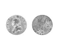 Objeto metálico de formato circular. En el anverso aparece un escudo chileno de forma irregular, con penacho, circundado por dos ramas de laurel atadas con una cinta. Le rodea una leyenda. Por el reverso, un cóndor con alas expendidas, con eslabones de cadena en el pico y garras. Le rodea una leyenda.