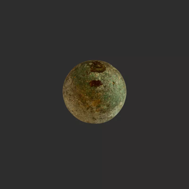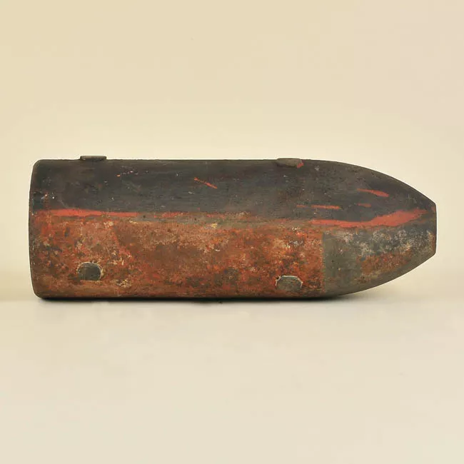 Objeto de munición realizada en metal. La zona superior es de forma tr...