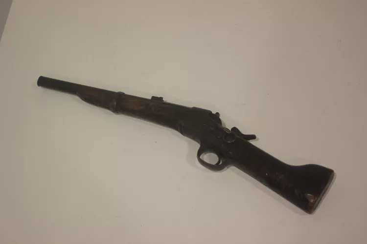 Revólver de retrocarga, de doble acción y fuego central, de tamaño pequeño. Es una copia del modelo "bulldog" británico. Presenta mecanismo trabajo, óxido y algunas piezas faltantes. Tiene cañón estriado.