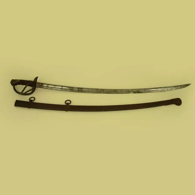 Espada con hoja en sección triangular, con cazoleta con calados circulares. Mango irregular, estriado y de forma cónica, forrado con piel rugosa de raya o tiburón, con torzal metálico. Pomo en forma de urna. La vaina tiene un botón de brocal bastante grande, de forma relativamente triangular, con un lado lobulado.