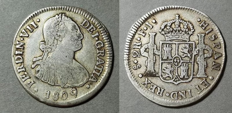 Moneda de forma circular en la que se representa un cóndor rompiendo c...