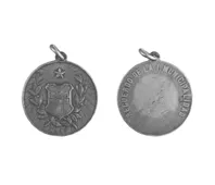 Medalla circular, el anverso presenta el busto de un militar y junto a...