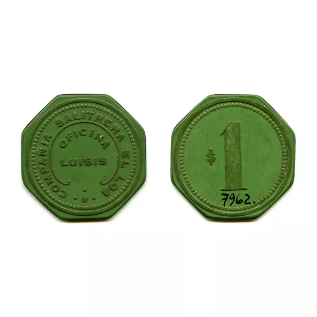 Moneda de formato circular, arriba inscripción REPUBLICA DE CHILE, en ...