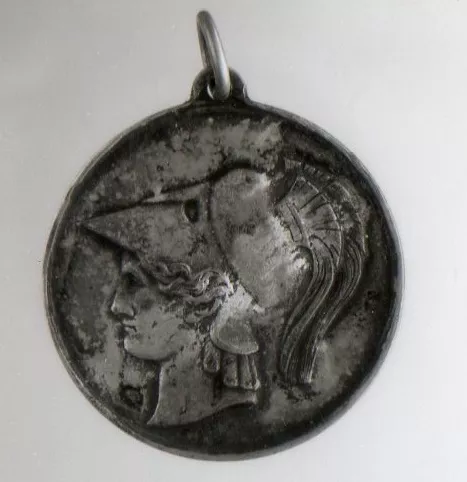 Objeto metálico de formato circular. En el anverso aparece el escudo d...