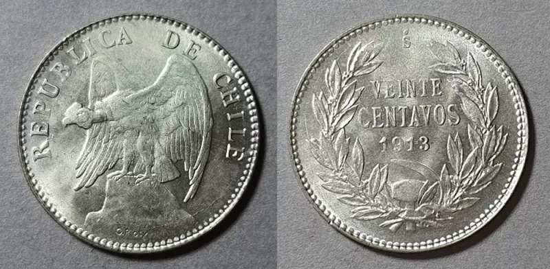 Moneda circular con un cóndor en anverso, tiene alas desplegadas y est...