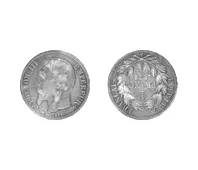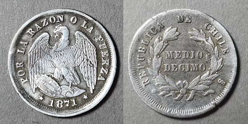 Moneda circular en cuya cara aparece un cóndor con las alas desplegada...