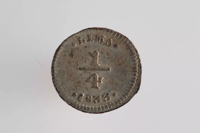 Moneda circular en cuya cara aparece el busto de perfil de Carlos IV. ...