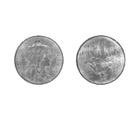 Objeto metálico de formato circular. Por el anverso aparece el escudo de Bremen bajo una corona real. Le rodea una leyenda. Por el reverso, la inscripción 1 / GROTEN / 1840 dentro de una corona de encina.