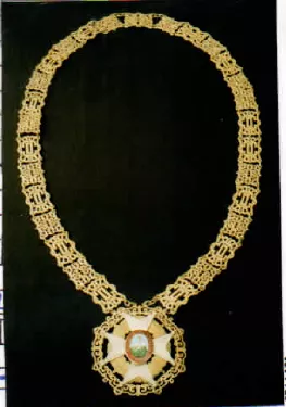 Objeto conmemorativo de metal dorado compuesto por una cadena de eslab...