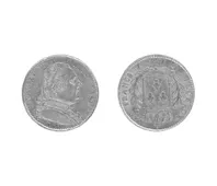 Objeto de forma de circular de metal. Moneda Argentina, anverso figura...