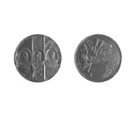 Objeto metálico de forma circular con dos caras y borde regular. Por u...