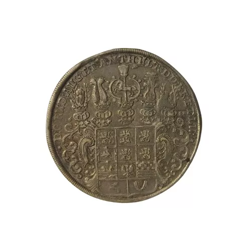 Objeto metálico de formato circular. Por el anverso aparece el escudo de Oldenburgo bajo una corona gran ducal. Le rodea una leyenda.
