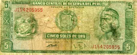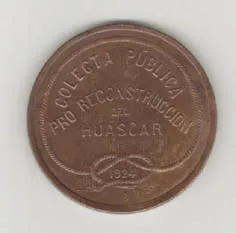 Moneda de forma circular, con un cóndor a la izquierda en actitud de e...