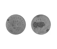 Objeto metálico de forma circular. Por el anverso representa una inscr...