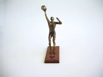 Trofeo de base rectangular, con una figura antropomorfa sobre ella. És...
