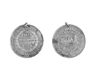 Medalla con parte superior en forma de arco y parte inferior recta. An...