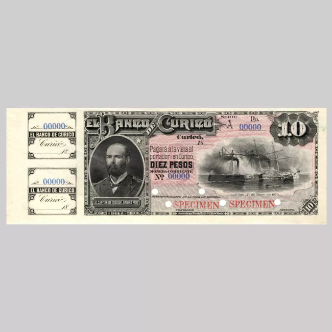 Specimen de diez pesos del Banco de Curicó, bidimensional, de formato ...