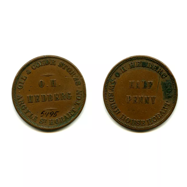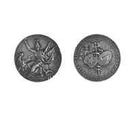 Objeto metálico de forma circular. Por el anverso representa una figur...