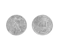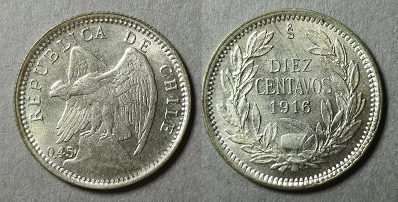 Moneda circular con un cóndor en anverso, tiene alas desplegadas y est...