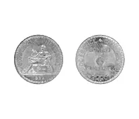 Moneda metálica de color dorado oscuro y forma circular. Por el anvers...