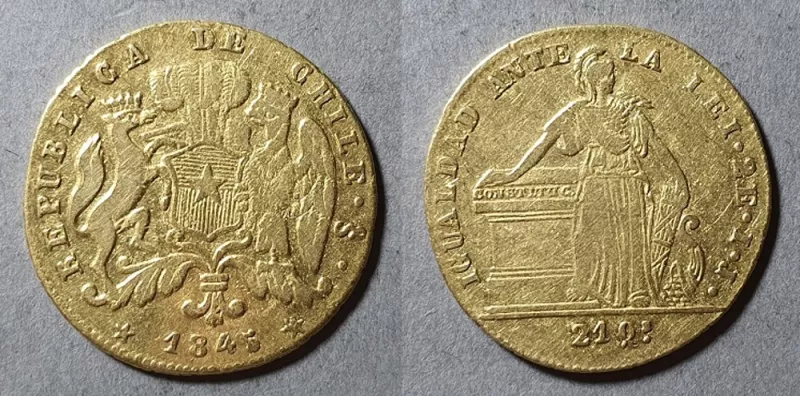 Pieza de oro, de forma circular. El anverso tiene la leyenda “A don Ja...