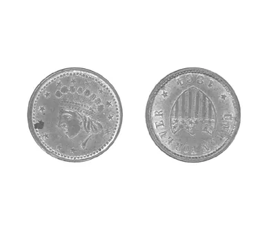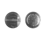 Objeto metálico de forma circular. Por el anverso representa el fronti...