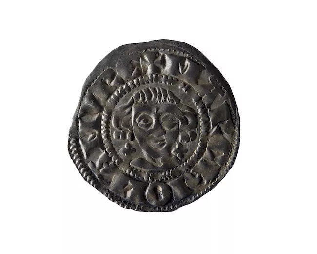 Objeto metálico de forma circular y bordes irregulares, con gráfila de...