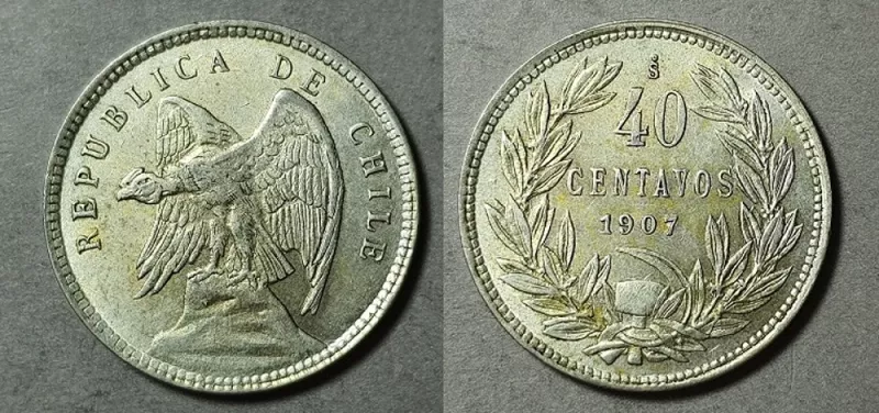 Moneda circular con un cóndor en anverso, tiene alas desplegadas y est...