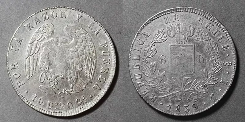 Moneda circular en cuya cara aparece la figura de un cóndor con las al...