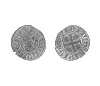 Fabricado en metal color plateado. En el anverso presenta, cabeza femenina de perfil. Al reverso, letras inscritas en círculo, letras y números.